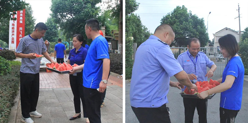 “今天的西瓜特別甜!”職工們吃著清甜可口的西瓜,臉上都洋溢著幸福的笑容。