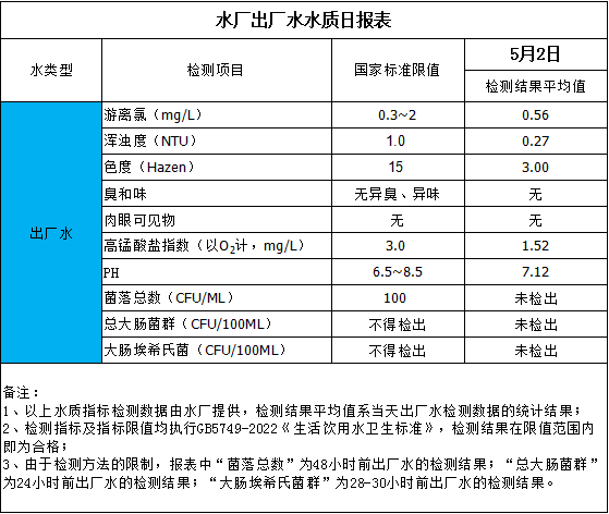 水廠出廠水水質日報表(2025-5-2)