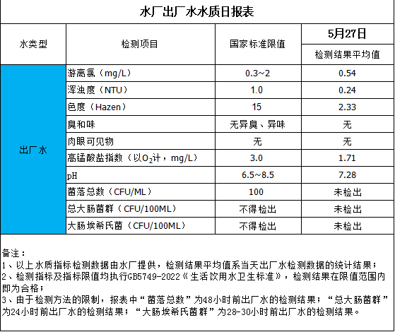 水廠出廠水水質日報表(2025-5-27)