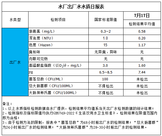 水廠出廠水水質日報表(2025-7-17)