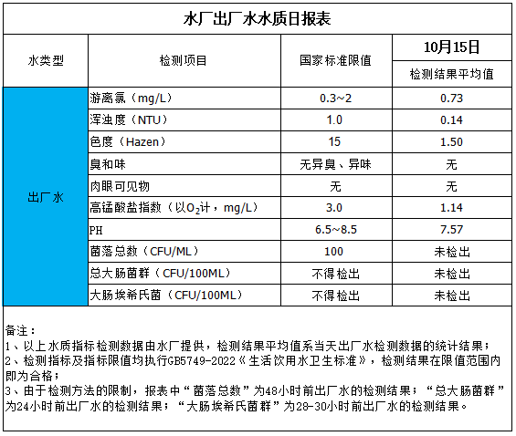 水廠出廠水水質(zhì)日報(bào)表(2025-10-15)