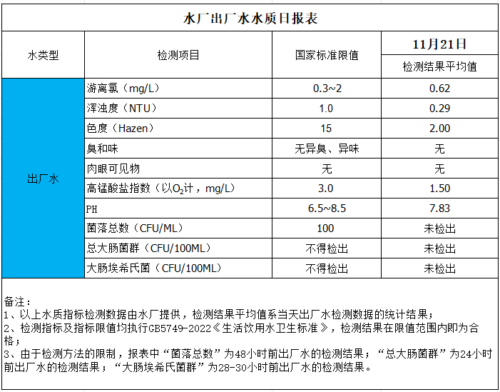 水廠出廠水水質日報表(2025-11-21)