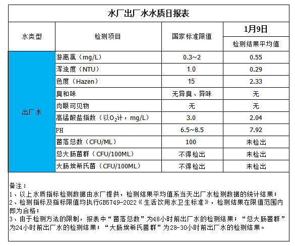 出廠水水質(zhì)日報(bào)表(2026-1-9)