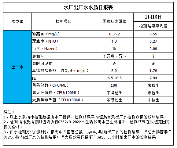出廠水水質日報表(2026-1-16)