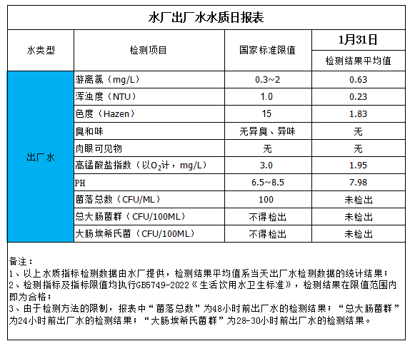 出廠水水質日報表(2026-1-31)