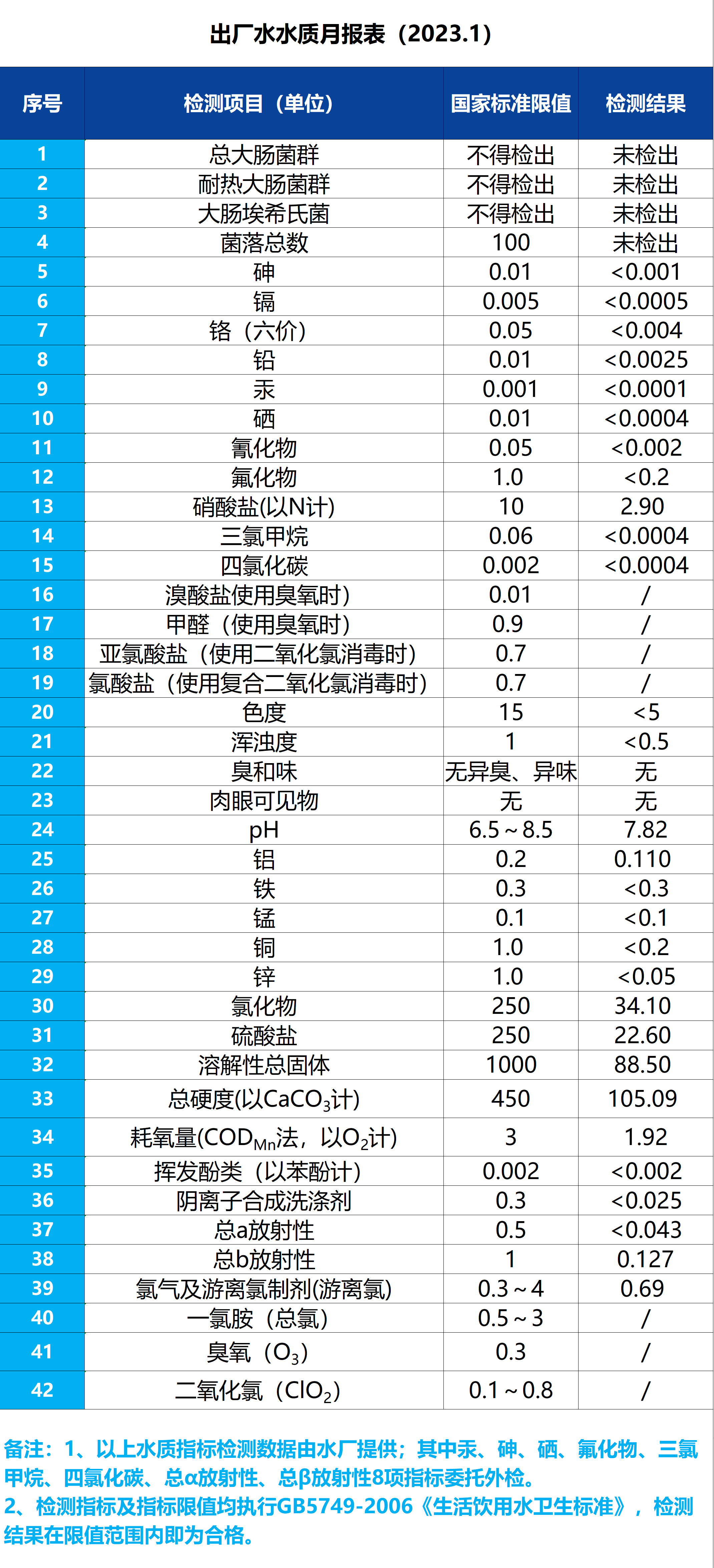 出廠水水質(zhì)月報表(2023.1)