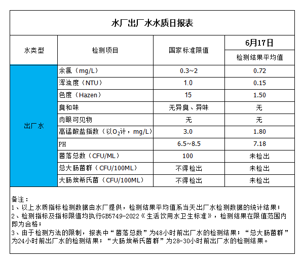 水廠出廠水水質日報表(2023-6-17)