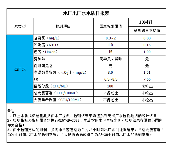 水廠出廠水水質日報表(2023-10-7)