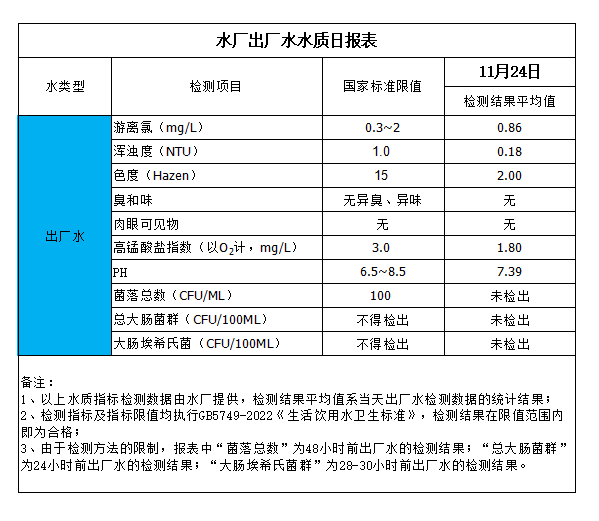 水廠出廠水水質(zhì)日報(bào)表(2023-11-24)