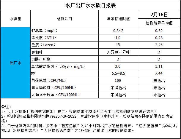水廠出廠水水質日報表(2024-2-15)
