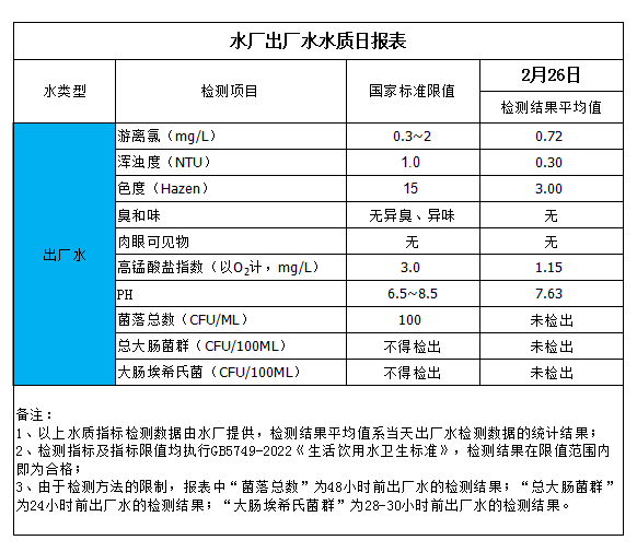 水廠出廠水水質日報表(2024-2-26)